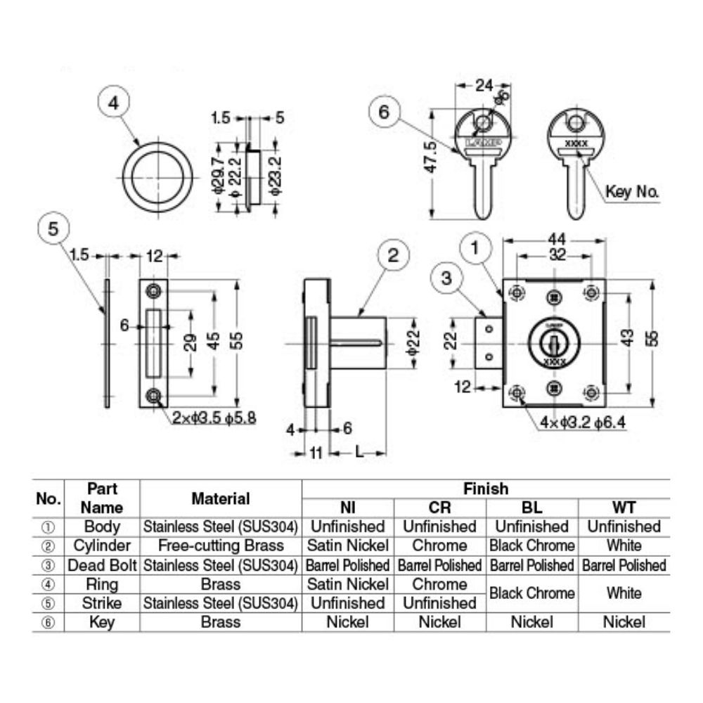 Item NameKey TypeCylinder DiameterDoor ThicknessLWeight
